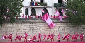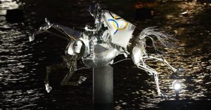 بخشی از این مراسم، که روشن نبود هدفش چیست ، با هدف رخداد یعنی ورزش، هم خوانی نداشت و زمانش هم بسیار دراز بود و از میزان توجه به کار ژیمناست ها و کسانی می کاست که ماهها روی برنامه خود کار کرده بودند. این بخش با شماری واخورد بسیار بد روبرو شد. خرده گیریها به این دلیل بود که این بخش ارزش نو آوریهای تکنیکی و جاودئی میز آن سن بخش های دیگر، از جمله دویدن اسب بر روی اب رودخانه سن را کم می کرد چون بیشتر به آن حالت کاباره ای می داد که می تواند تنها مورد خوشایند اندکی قرار گیرد. گقتنی است که علیرغم جذبه و تازگی بسیار برنامه های نمایش، پراکندگی در نشان دادن شماری جزئیات بدون این که یک خط اصلی در آن دیده شود، پرسش برانگیز بود. اما نشان دادن تاریخچه مکان هائی که کشتی هیات ها از جلوی آن رد می شدند، از جمله سر بریده “ماری آنتوانت”، ملکه فرانسه، در دستانش، در ساختمان “سرایداری” کاخ لوور ، که روزهای پیش از زدن گردنش با گیوتین در آن زندانی بود ( که آن هم شماری را ناخشنود کرد) و یا بخشی از یک مینیاتور ایرانی در درون روخانه سن که اصل آن جزو گنجینه های موزه لوور است، به باور من بسیار به خوبی نقش بنای تاریخی را می رساندند. این ابتکار شایسته، همچنین در بخشی دیگر توسط دونده نقاب داری که همراه با مشعل از روی سقف های کهن ساختمان های پاریس می گذشت بسیار خوب طراحی شده بود. برای نمونه، در یک مرحله، در درون موزه لوور می دیدیم که شخصیت تابلوها جان گرفته از آن بیرون آمده اند تا از پنجره مراسم راببینند. ای کاش همین روند ادامه پیدا می کرد. به هر رو اسب دنده بر روی اب تا اندازه ای هدف پیک را دنبال می کرد.