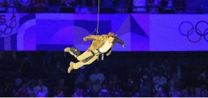 یکی از چشمگیرترین برنامه های پایانی بازیهای المپیک، افزون بر صخنه پیانوی آویزان در هوا و نواختن آن توسط یک پیانیست برای همراهی یک خواننده اپرا، فرود آمدن “تام کروز” از بام استادیم با یک کابل بود، که انتطارش می رفت، چون از چند روز پیش خبرها درز کرده بود و بودن این هنرپیشه در پایتخت فرانسه هم به شایعه ها دامن می زد. البته پاره ای از آنها حکایت از شرکت “تیلور سویفت” در مراسم پایانی نیز داشتند چرا که بنا بود این خواننده پر هوادار آمریکائی سه کنسرت در اتریش داشته باشد که به دلیل دستگیری تروریستی که می رفت در این کنسرت ها به سوء قصد های انتحاری دست بزند، کنسرت ها لغو گردید.