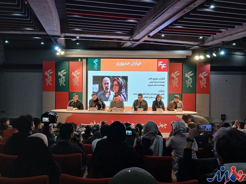 هنرمندنیوز: نشست پرسش و پاسخ فیلم سینمایی «خیابان جمهوری» آخرین فیلم روز دوم جشنواره ملی فیلم فجر با حضور منوچهر هادی تهیهکننده و کارگردان، پدرام کریمی نویسنده، الناز ملک و روحالله زمانی بازیگران و میلاد حسینی فیلمبردار شامگاه یکشنبه ۱۲ بهمن در پردیس ملت برگزار شد.