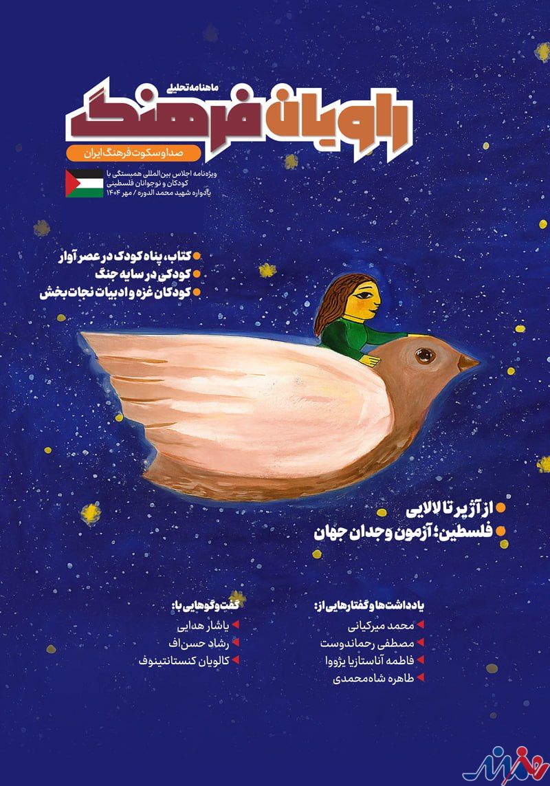 به گزارش هنرمندنیوز به نقل از روابط عمومی خانه کتاب و ادبیات ایران، به درخواست هشتمین اجلاس بینالمللی همبستگی با کودکان و نوجوانان فلسطینی، ماهنامه تحلیلی «راویان فرهنگ» ویژهنامهای با محوریت کودک در عصر آوار؛ کتاب، پناه رنجدیدگان و با مدیر مسئولی ابراهیم حیدری و سردبیری مرتضی بریری منتشر کرد.
