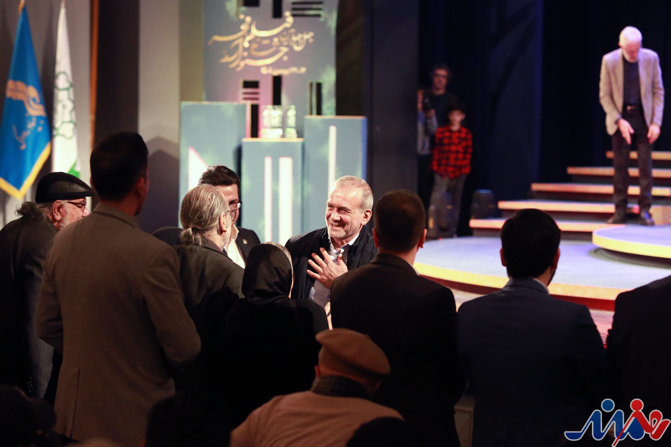 آیین اختتامیه چهلوچهارمین جشنواره ملی فیلم فجر با حضور رئیس جمهور پزشکیان، سید عباس صالحی وزیر فرهنگ،جمعی از مدیران و هنرمندان در تالار وحدت برگزار و برگزیدگان معرفی شدند.